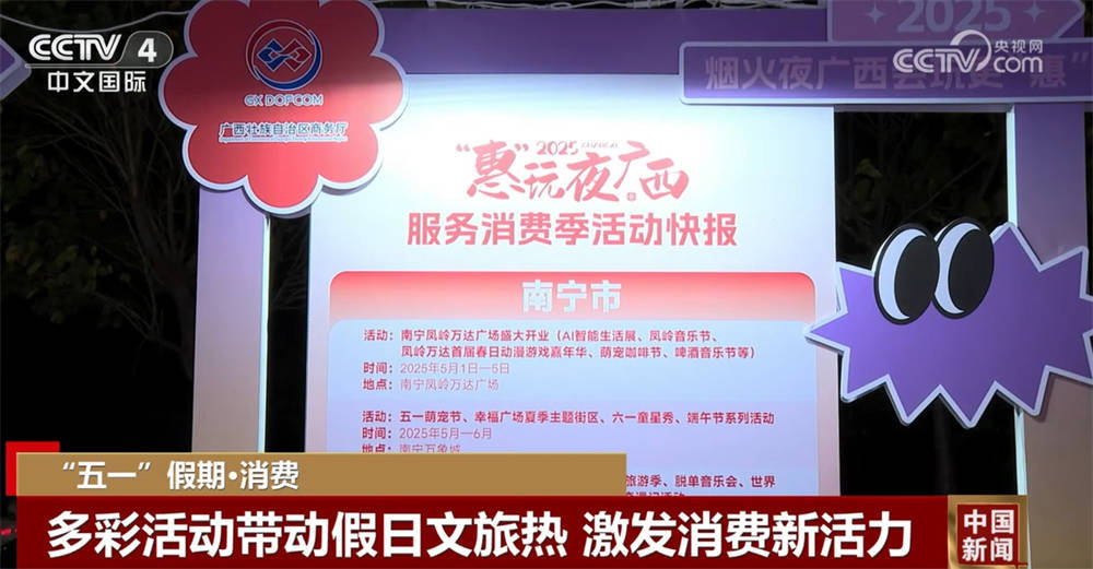随着“五一”假期临近,各地也陆续推出文旅消费新场景。“五一”前夕,广西举办2025年“惠”玩夜广西服务消费季活动,不仅推出一系列优惠政策,还上线运行了“烟火夜广西”百街消费地图小程序,精选了100条特色商业街区,为市民游客提供全方位游玩指南。